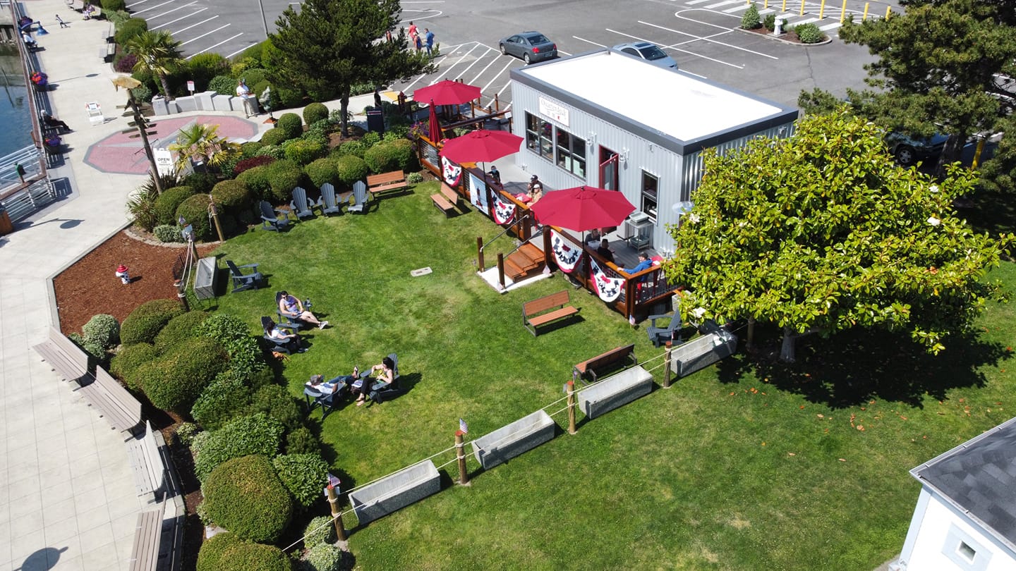 での眺望を楽しみながらの一杯はいかがでしょうか。 クォーターデッキ では、ワイン、ビール、コーヒーが楽しめます。また、定期的にフードトラックやポップアップが出店し、食べ物も提供しています。ワインは別として、この店の本当の主役は?ヴァション島とモーリー島、ピュージェット湾、そして息を呑むような夕日を眺めることができるのです。定期的に開催されるコンサートや音楽も雰囲気を盛り上げてくれますし、デモイン・ファーマーズ・マーケットに行った後に立ち寄るには最高の場所です。 デモイン・ファーマーズ・マーケット.